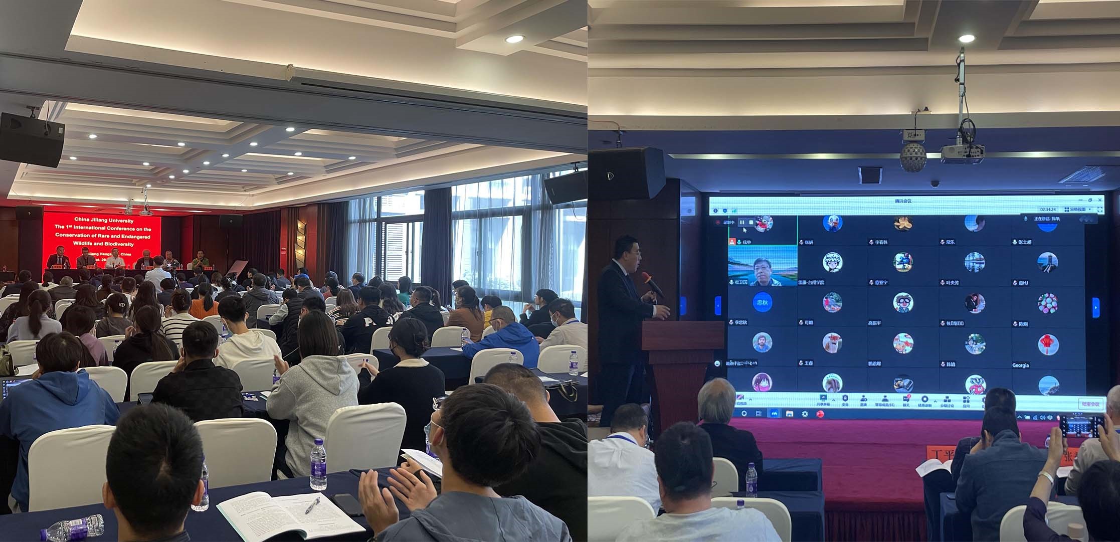 10月29日-30日,丹桂飘香、金秋送爽,由中国计量大学和浙江自然博物院联合主办,我校生命科学学院和珍稀濒危野生动物与多样性研究所联合承办的“首届珍稀濒危野生动物与多样性保护国际研讨会”在杭州爱丁堡假日酒店顺利举行。会议采取线下会议和线上直播相结合的方式进行,来自国内外高校、科研院所、自然保护区等20余家单位的150多名代表出席了研讨会,其中线下代表99人参加了学术研讨和交流。