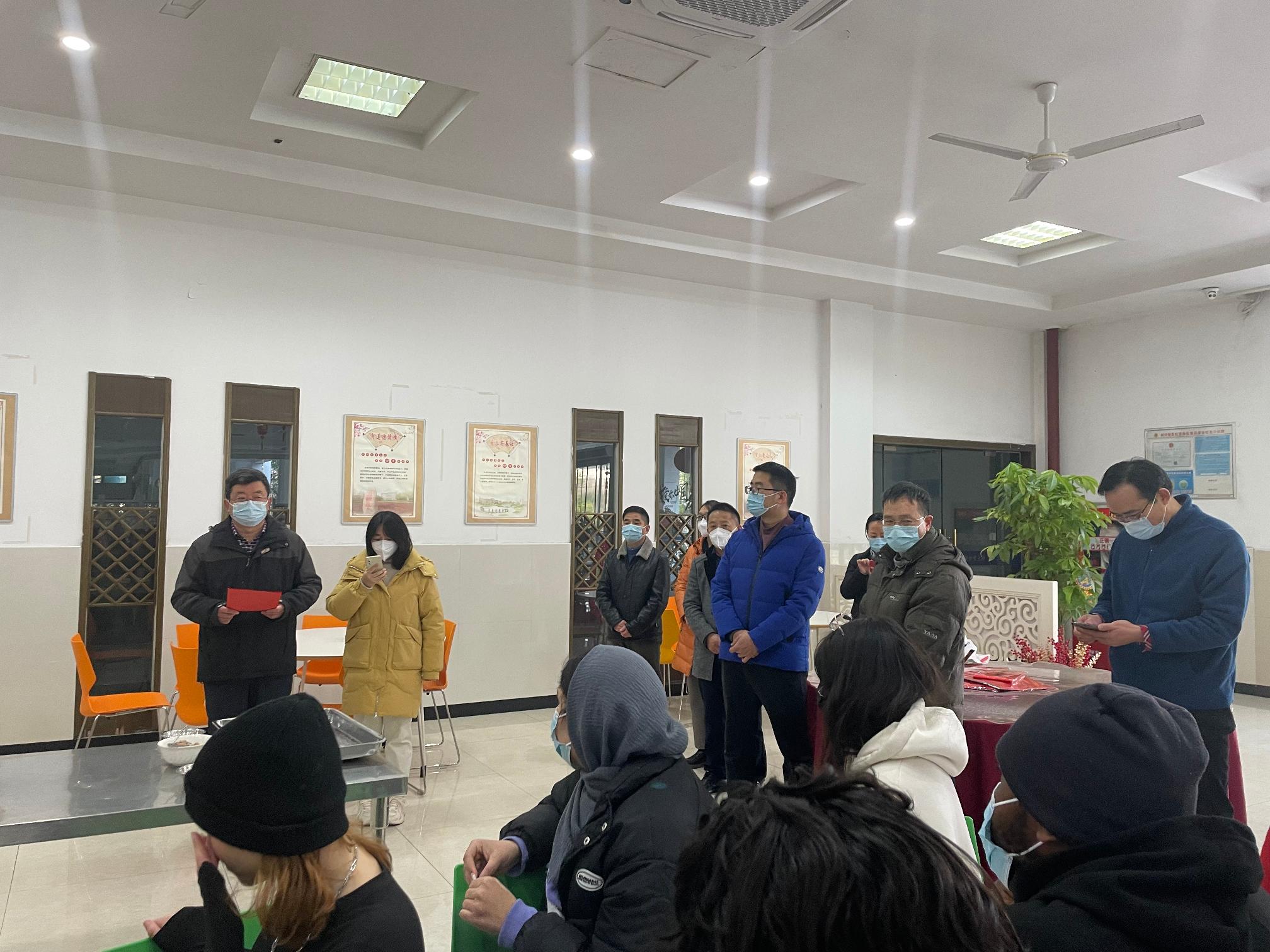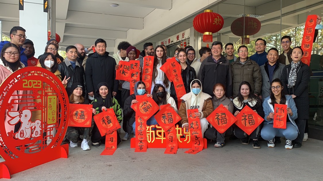在“兔”年到来之际,为了让寒假留校的国际学生更好地感受中国新年和传统文化的魅力,1月19日,国际教育学院联合后勤服务中心组织开展了“迎春接福,喜迎兔年”系列活动。校领导王迪钊副校长,教师代表,国际处、国际教育学院和后勤服务中心等部门工作人员,以及留校的部分中外学生参加了本次活动。