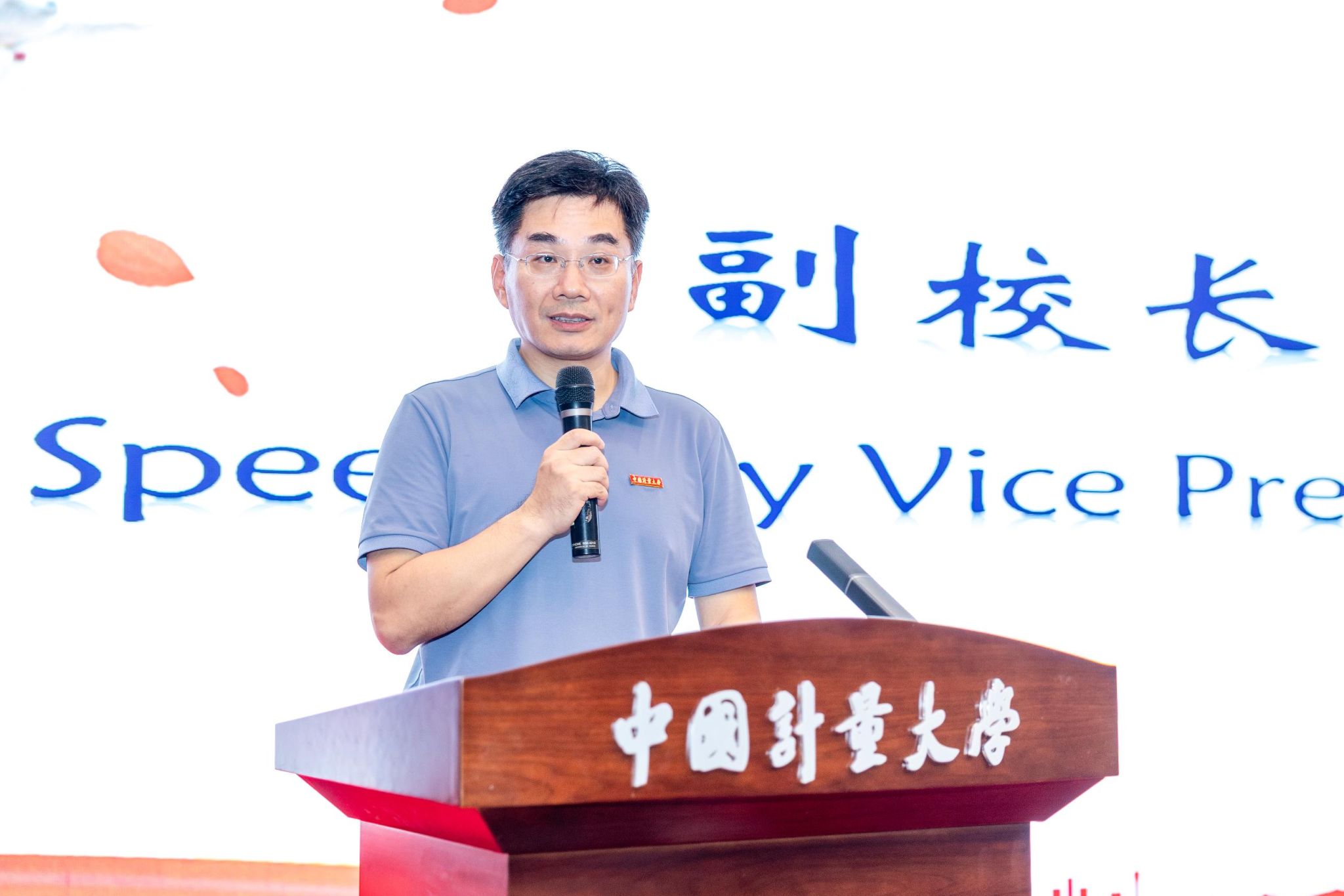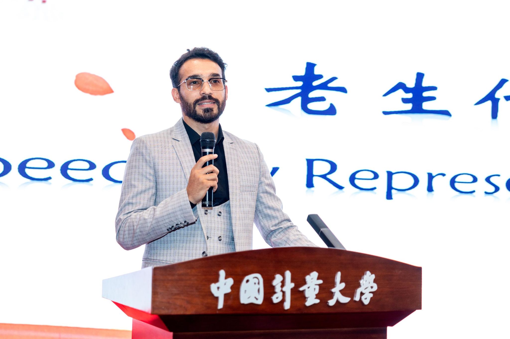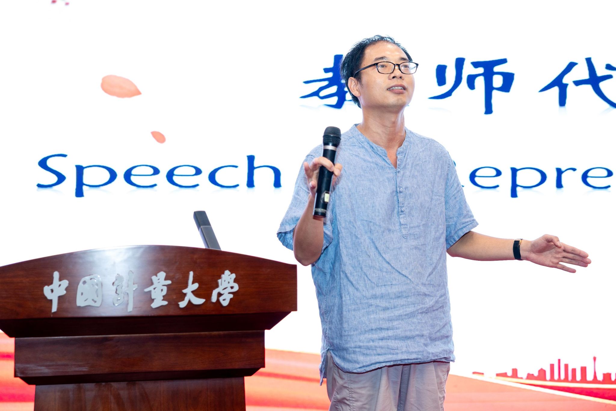 理学院许权老师作为教师代表发言。发言中,他首先欢迎2025级国际学生加入中国计量大学大家庭,向全体2025级新生分析了未来学习生活中可能面临的诸多挑战,分享了在今后学习中的众多机遇。同时,他鼓励新生们要勇于发表见解,交流看法,提高自身创新力与创造力;他还希望新生们能制定好未来规划,学能所用,探寻中国大美,结交中国朋友。